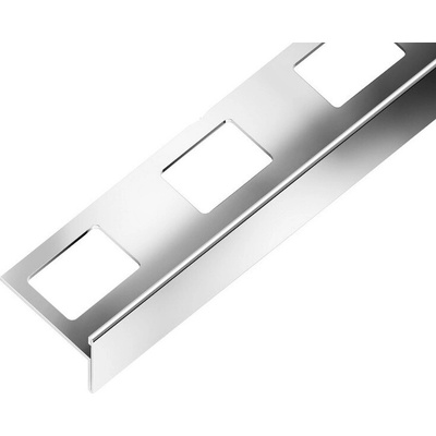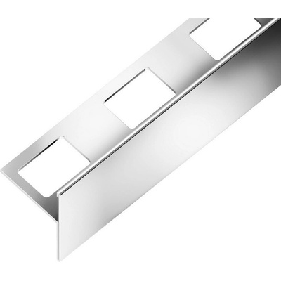 Tento nerezový profil má ideální úhel (135°), tudíž po instalaci a aplikaci kamenného koberce dosáhneme hezkého detailu v podobě tenké začištěné hrany. Tato lišta má také otvory...