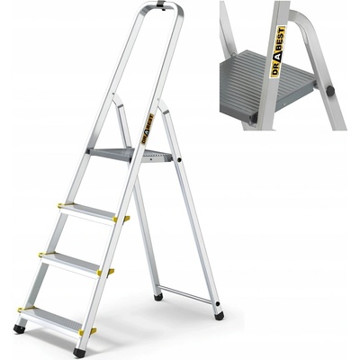 Schůdky jednostranné hliníkové ALVE 2914 HOBBY Jednostranné schůdky, počet příček 1 x 4, výška 1,48m, šířka 431mm, váha 3,1kg, výška posledního nášlapu 0,76m. Nosnost do...