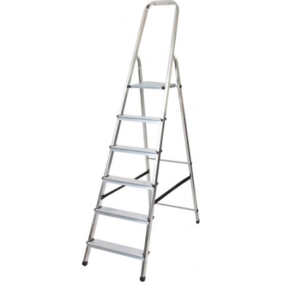 Schůdky hliníkové jednostranné DR(150)ALD-6, počet nášlapů včetně plošinky 1x6, rozměry plošinky 250 x 250 mm, výška plošinky 1,19 m, šířka schůdků 475 mm. Nosnost 150 kg.