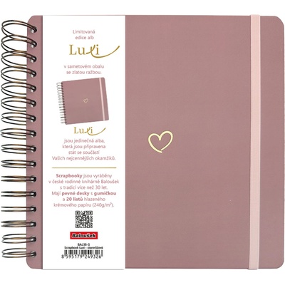 Limitovaná edice scrapbooků se sametovým přebalem v moderní starorůžové barvě a se zlatým motivem Srdíčka. Luxi jsou jedinečná alba s krémovým papírem, kroužkovou vazbou a s...