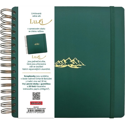 Limitovaná edice scrapbooků se sametovým přebalem v moderní tmavě zelené barvě a se zlatým motivem Hor. Luxi jsou jedinečná alba s krémovým papírem, kroužkovou vazbou a s...