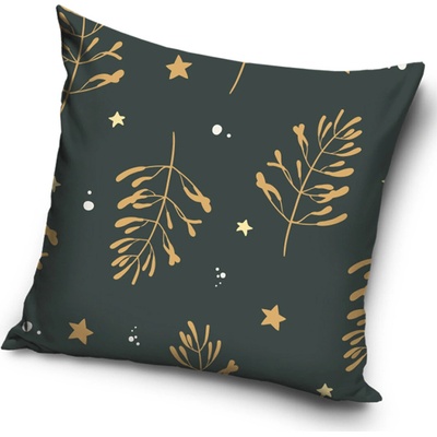 Vánoční povlak Šedé kouzlo jmelí 40×40 cm Dodejte svému domovu elegantní vánoční atmosféru s povlakem na polštářek v tmavě šedé barvě s motivem zlatého jmelí a hvězdiček....