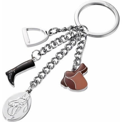 Klíčenka se 4 přívěsky - třmen, jezdecká bota, sedlo a destička s koněm. Kombinace stříbrné, černé a odstínů hnědé. • rozměry: 110 x 95 x 35 mm • hmotnost: 56 g • motiv...