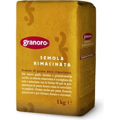 Dvojitě mletá semolina od prémiové apulské značky Granoro – základ autentických italských těstovin, chleba a pizzy Semolinová mouka Granoro Rimacinata je dvakrát mletá pšeničná krupice (italsky semola rimacinata) získaná z nejkvalitnější tvrdozrnné pšenice (Triticum...