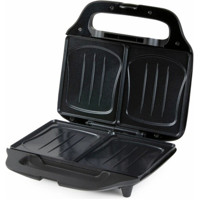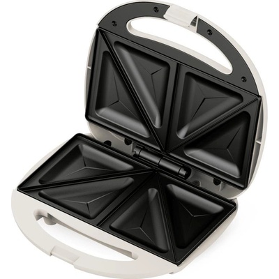 Kvalitní sendvičovač s nepřilnavými plotnami pro dva sendviče trojúhelníkového tvaru vybavený tepelně izolovanou rukojetí.