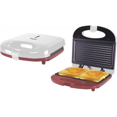 sendvičovač, příkon 750 W, nepřilnavé desky, pro přípravu 2 čtvercových sendvičů, tepelně izolované madlo, protiskluzové nožičky, možnost skladování ve vertikální poloze