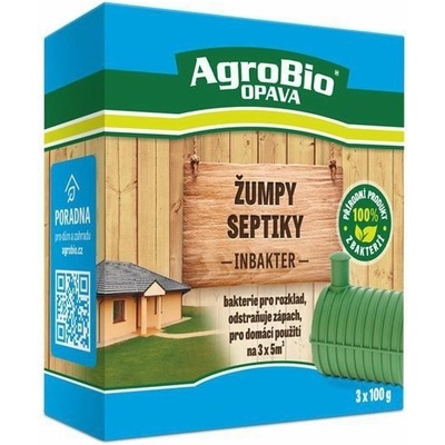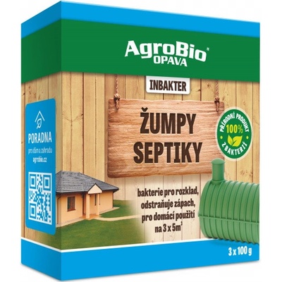 Agrobio INBAKTER Žumpy septiky 3x100g Přírodní bakteriální přípravek pro rychlý rozklad organických nečistot v žumpách nebo septicích v novém obalu "dřeva" a v nové řadě...