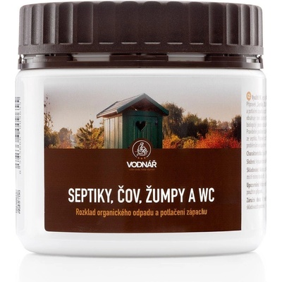 Vodnář Septiky, ČOV, žumpy a WC je biologický přípravek určený k účinnému rozkladu organických nečistot v septicích, čistírnách odpadních vod, žumpách a suchých WC. Obsahuje...