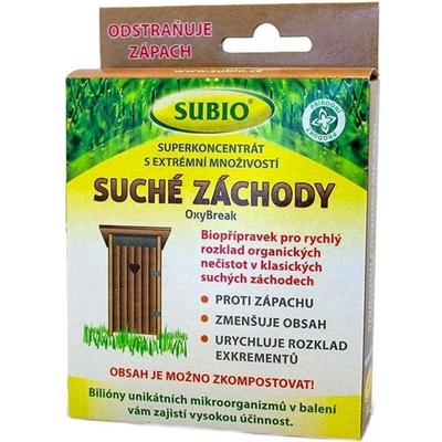 Suchá WC je superkoncentrát s extrémní množivostí, směs přírodních bakterií a enzymů pro zpracování hmoty v latrínách. - přírodním způsobem urychluje rozklad exkrementů a...