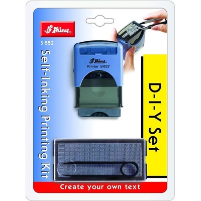 Sestavovací razítko Shiny S-882 DIY SET Kvalitní sestavovací razítko řady D-I-Y Set, je dostupné v modré barvě a nabídne maximální velikost otisku 38x14 mm (3 řádky po 18...
