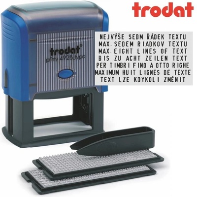 Razítko Trodat 4913 je větší samobarvící textové Trodat razítko. Jak velký je otisk razítka Trodat 4913? Otisk razítka má 22 mm na výšku a 58 mm na šířku Kolik řádků textu...