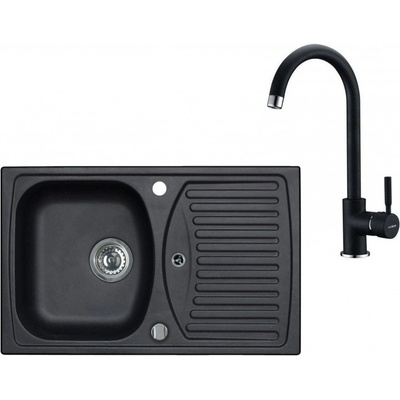 Set Dřez: granitový s odkapem, materiál granital, 80% kameniny,extra hladký povrch,snadná údržba, excentrický sítkový odtok 3 1/2" s přepadem, sifon pro úsporu místa s odbočkou na myčku, vyvrtané otvory pro baterii a excentrický sifon, univerzální dřez+baterie: rozměry...