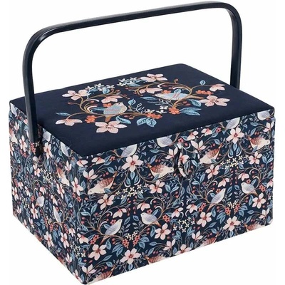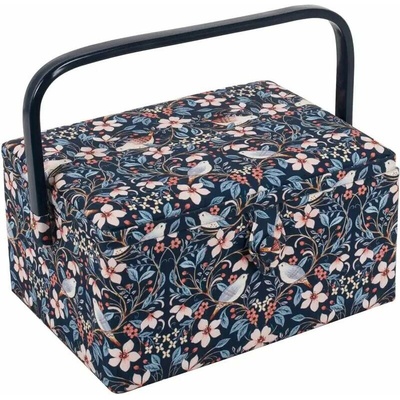 Velký košík na šití, pletení a háčkování - Ptáčci na květinách Praktický velký pevný košík, kam si poskládáte vše potřebné k šití, pletení či háčkování. Uvnitř je praktický plastový pořadač, kam si můžete dát například nitě, knoflíky, háčky, značkovače, centimetr...