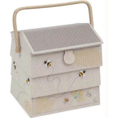 Střední box na šití, pletení a háčkování ve tvaru včelího úlu Praktický pevný box se zásuvkou, ve tvaru včelího úlu je potažený lněným plátnem a zdobený aplikacemi včel a...