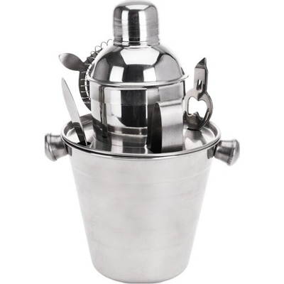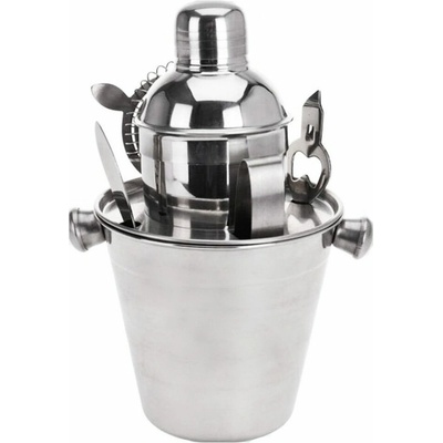 - materiál: nerezová ocel- sada obsahuje 7 ks:- kbelík na led- víko na kbelík / pořadač pro uložení v kbelíku- shaker s uzávěrem- sítko- otvírák- nůž- kleště na led nebo ovoce