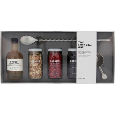 Hlavní výhody: - skvělý dárek na koktejlovou párty - karty s recepty usnadňují používání této sady V sadě: - 1x sirup zázvor a tymián 100 ml - 1x pomerančová kůra 30 g - 1x jalovcové bobule 30 g - 1x růžový pepř 30 g - 1x míchací lžíce - 1x odměrka 20 ml - 3...
