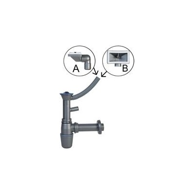 Dřezový sifon šetřící místo barva bílá materiál plast průměr odpadu 40 mm velikost závitu 6/4" s přepadem a odbočkou, včetně pilety (sítkový ventil)