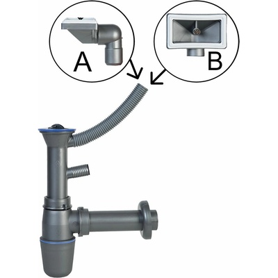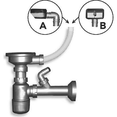 Sifon pro dřez s přepadem materiál plast pro otvor 89 mm přepad ze dřezu vhodný pro dřezy DR48/64, DR45/58, DR43, DR49/78, DR44/74, DR49/78R, DR51, DR51TS, DR48/64, DR49/77R