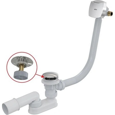 Alcadrain sifon vanový automat s napouštěním přepadem, pro vany standardních rozměrů, s otvorem Ø 5,2 cm, materiál polypropylen, délka 100 cm, krytky chrom, zavírání pomocí...
