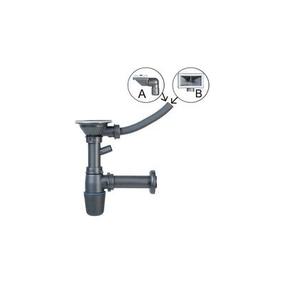Sifon pro kuchyňský dřez s přepadem, výška 89 mm, materiál plast. NSP89, NSP89_NSE