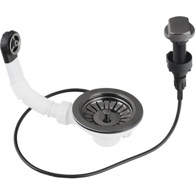 Vanový odtokový komplet s přepadem, materiál plast a kov, délka 570 mm, povrch černý mat, ovládání výpusti bowdenem. X01745, X01745_RAV