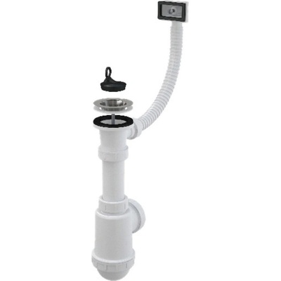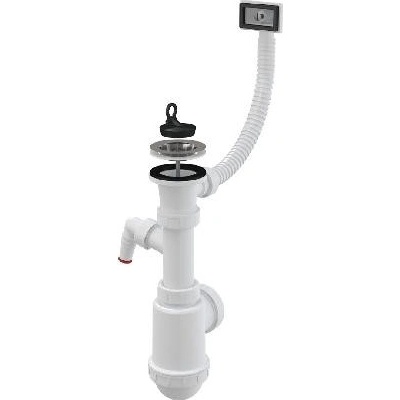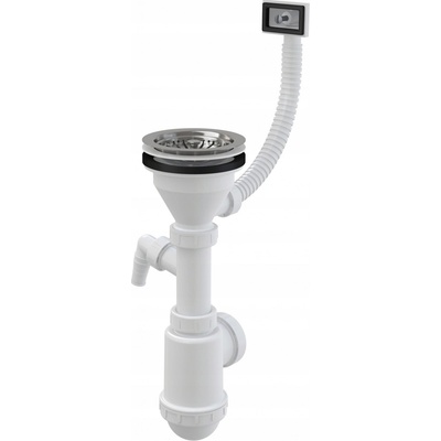 Sifon dřezu s přípojkou a pružnou trubkou, nerezové sítko DN115 - Alcaplast A447P-DN50/40 CHARAKTERISTIKA VÝROBKUPoužití - Dřez s přepadem Specifikace - Materiál:...