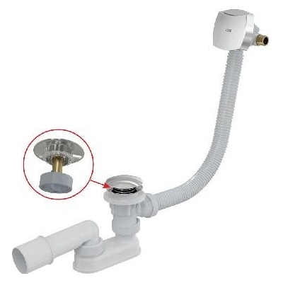 Vanový sifon s napouštěním pro napouštění vany přepadem pro odtok vody z vany do odpadu pro vany standardních rozměrů pro vany s odtokovým otvorem Ø52 mm Vlastnosti vanová...