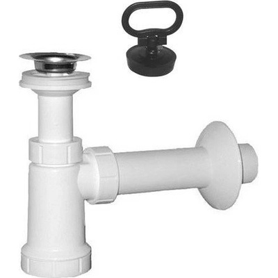 Umyvadlový sifon s odbočkou, nerez výpust, zátka s uchem, odpad 40 mm, materiál plast, barva bílá. 151.114.0, 151.114.0_UBC
