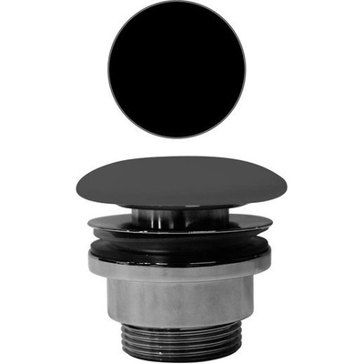 Výpust umyvadlová 5/4", celokovová, velká zátka, materiál mosaz, povrch černá mat. Použití pro keramická, plastová a skleněná umyvadla bez přepadu. A396BLACK, A396BLACK_ALC