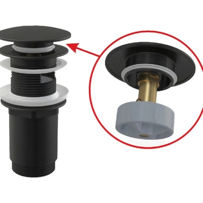 Výpusť umyvadlová CLICK-CLACK 5/4. výpusť má velkou zátku a celokovovou matku povrchová úprava PVD - metal grey pro umyvadla s přepadem