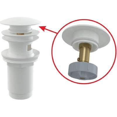 Alcadrain Pro více sérií Výpust umyvadlová click/clack 5/4", celokovová, s přepadem, velká zátka, bílá A392B.