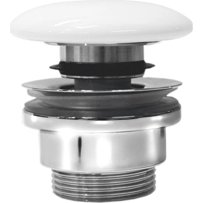 Výpusť umyvadlová CLICK-CLACK 5/4 s bílou keramickou zátkou. - provedení bílá lesklá - výpusť má velkou bílou keramickou zátku a celokovovou matku - pro umyvadla s přepadem...