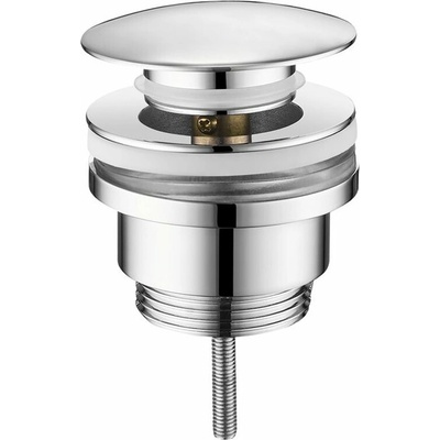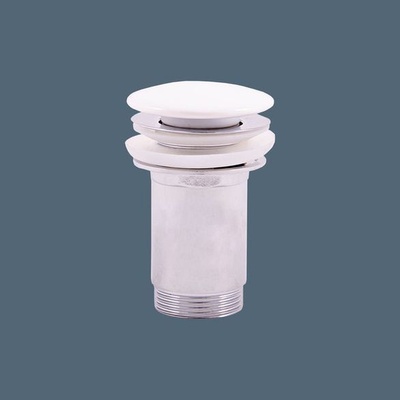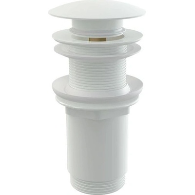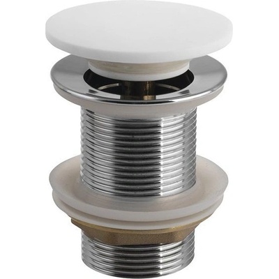 Umyvadlová výpust click/clack 5/4" celokovová bez přepadu, velká zátka bílá, pro plastová a skleněná umyvadla.