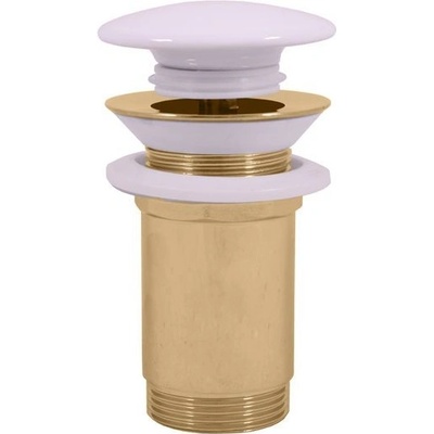 Výpusť umyvadlová CLICK-CLACK 5/4 s :keramickou zátkou. provedení zlato výpusť má velkou :bílou keramickou zátku :a :celokovovou matkuPovrchová úprava ""zlato"" - :termín dodání...