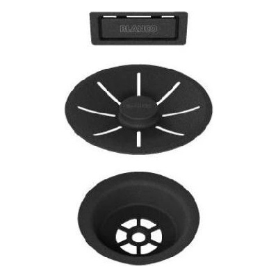 BLANCO Sada ocelových prvků v černé barvě pro přepadové armatury BLANCO Sada obsahuje přepadový prvek s logem BLANCO, ocelovou krytku a odtokový kalich, vše v barvě černá...