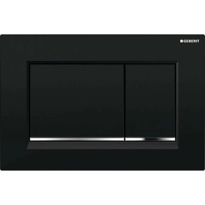 Designové dvoučinné ovládací tlačítko Sigma30 v černé barvě, proužek pochromovaný lesk, v elegantní černé barvě, od známé společnosti GEBERIT, k ovládání splachování u...