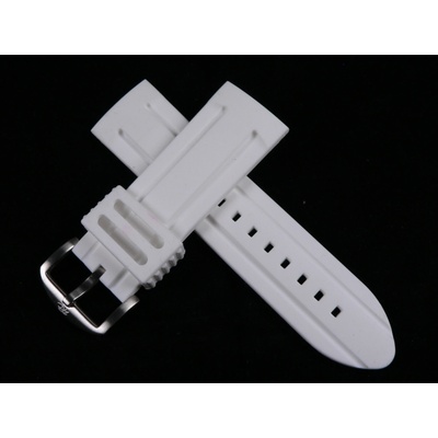 Řemínek silikon bílý 24mm COUSINS S34582 Rozměr: 24mm Materiál: silikon Barva: bílá Spona: trnová nerezová Délka: 18,5cm Zúžení: 24 / 22mm Výroba: Anglie ...