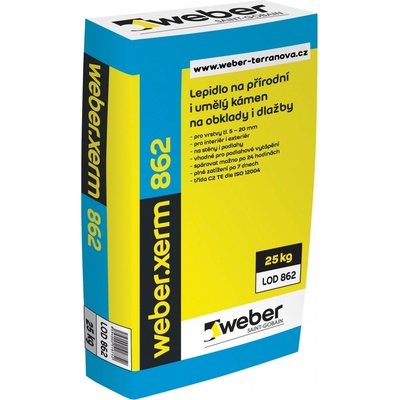 Weberxerm 862 lepidlo na přírodní kámen C2TE Lepidlo z trasového cementu pro středně vrstvé lepení obkladů, přírodního kamene a klinker pásky. Pro minerální podklady, jako...