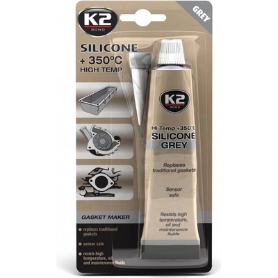 Silikon K2 Černý +350°C 21g Ideálně přilne k těsněným povrchům. Odolný vůči vysokým teplotám až do 350 °C. Splňuje požadavky výrobců automobilů (O.E.M. - Original Equipment...