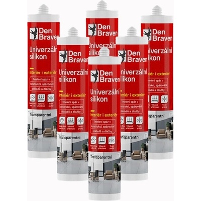 Univerzální silikon Den Braven. Pro využití v domácnosti. Utěsňuje spáry ve stavebních konstrukcích. Vysoká přilnavost na smalt, keramické dlaždice a povrchově upravené kovy....