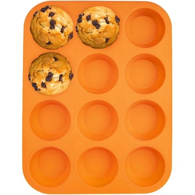 Silikonová forma na muffiny – 12 tvořítek. Je lehká a nepřilnavá, těsto se v ní nepřipéká, nepohlcuje pachy z potravin. Materiál: silikon - odolný vůči teplotám -40 °C až +220 °C. Vhodná do myčky na nádobí a MVT. Rozměry: 32,5x25x3 cm, pr. dna 5 cm.