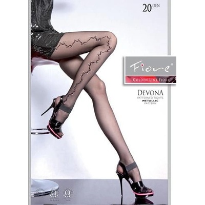 Devona-vzorované dámské punčochové kalhoty 20den s lurexem, s ozdobným vzorem po stranách ,vyrobené z příze typu elastan(satin sheer),bez vyznačeného sedu , bez zesílené špice...