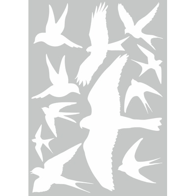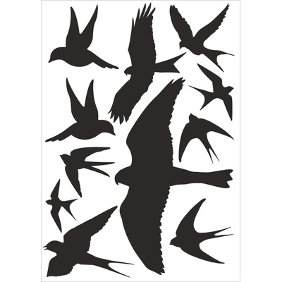 Velmi účinnou ochranou proti narážení menšího ptactva do oken či prosklených ploch, jsou siluety dravců.
