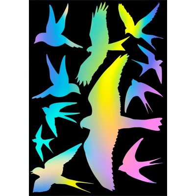 Samolepky proti narážení ptáků do oken Rainbow fantasy, využívají k odklonění letu ptáků do prosklených ploch, moderní technologii holografické fólie, spojenou se stovky let...