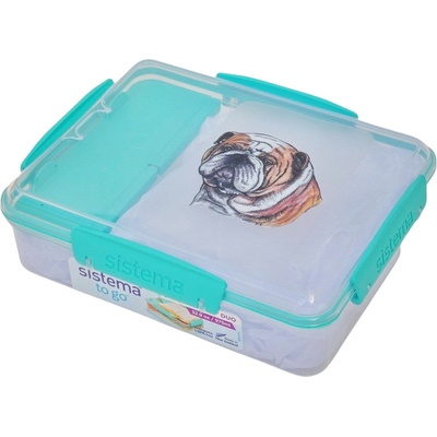 Průsvitný plastový svačinový box s barevným potiskem anglického buldoka (bulldog). Vhodný k uložení nejen klasické svačiny, ale i dalších potravin jako např. ovoce a oříšků,...