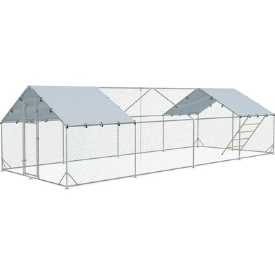 Výběh pro drůbež s bidlem PAWHUT D51-436V03SR, 3x8x1,95m Výběh pro drůbež vhodné pro 24-30 slepic, robustní konstrukce, ochranná plachta, závěsné krmítko a bidlo, rozloha 24...