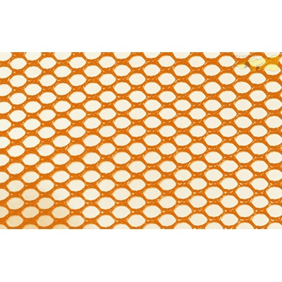 Tato oranžová síťovina má oka o velikost kosočtverců 0,5 x 0,5cm. Je vhodná na společenské doplňky, šaty apod. Lze použít na dekorační účely.