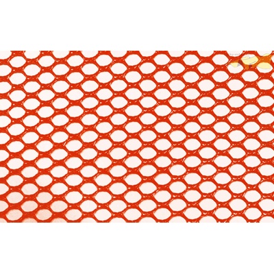 Tato červená síťovina má oka o velikost kosočtverců 0,5 x 0,5cm. Je vhodná na společenské doplňky, šaty apod. Lze použít na dekorační účely.