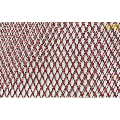 Tato vínová síťovina s leskem má oka o velikost kosočtverců 0,5 x 0,5cm. Je vhodná na společenské doplňky, šaty apod. Lze použít na dekorační účely.