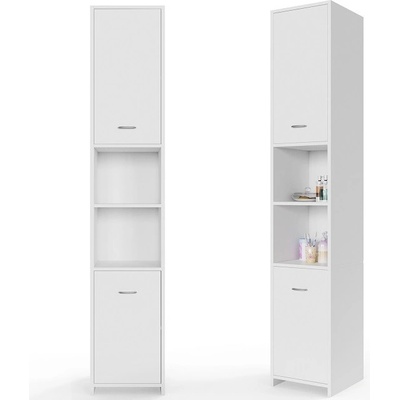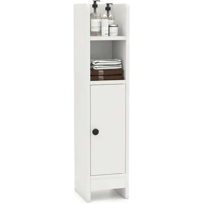 Koupelnová skříňka Jabba, Bílá Úzká koupelnová úložná skříňka s dvířky a policemi, volně stojící, nastavitelné police, bílá. br>S touto bílou koupelnovou skříňkou proměníte...